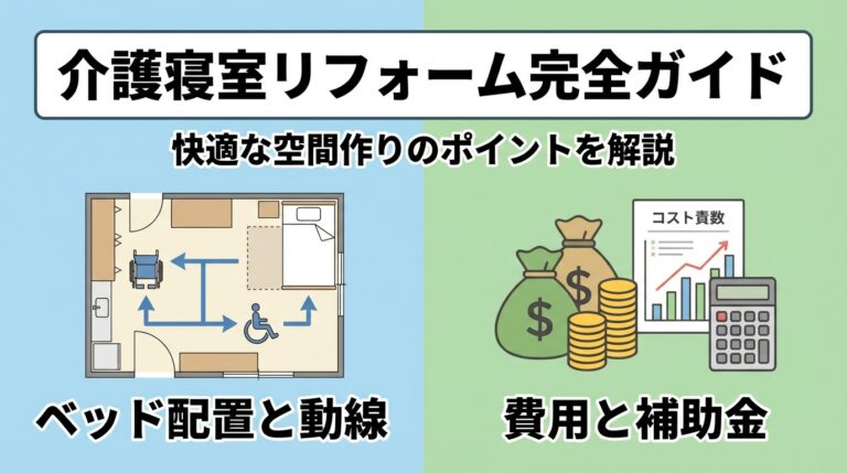 2026年3月10日 / 最終更新日時 : 2026年3月10日 【名古屋】介護リフォームのウッドテック 介護リフォーム 介護の寝室リフォーム完全ガイド|ベッド配置・動線・費用を解説 在宅介護に備えて寝室を見直すときは、内装のきれいさよりも、どの部屋を寝室にするか、トイレまで安全に移動できるかが重要です。特に夜間の移動や介助を考えると、寝室単体ではなく、寝室からトイレまでを一つの動線として整えることが […]