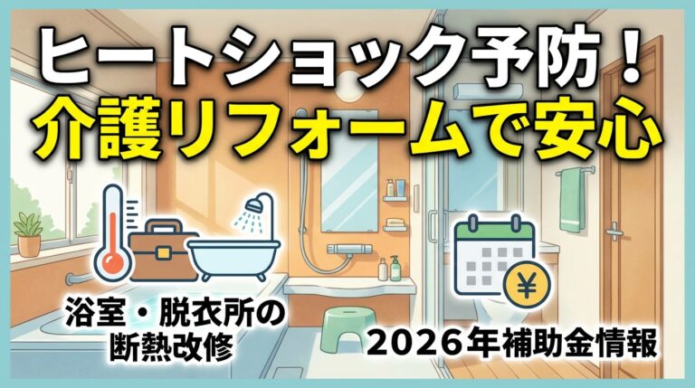 2026年3月10日 / 最終更新日時 : 2026年3月10日 【名古屋】介護リフォームのウッドテック 介護リフォーム 介護リフォームでヒートショック対策|浴室・脱衣所の断熱改修と2026年補助金 冬場の浴室や脱衣所の寒さは、高齢の家族にとって見過ごしにくいリスクです。特に暖かい部屋から寒い脱衣所へ移動し、さらに熱い湯に入る流れは、血圧の大きな変動を招く可能性があるため、住まい側の対策も早めに考えておきたいところで […]